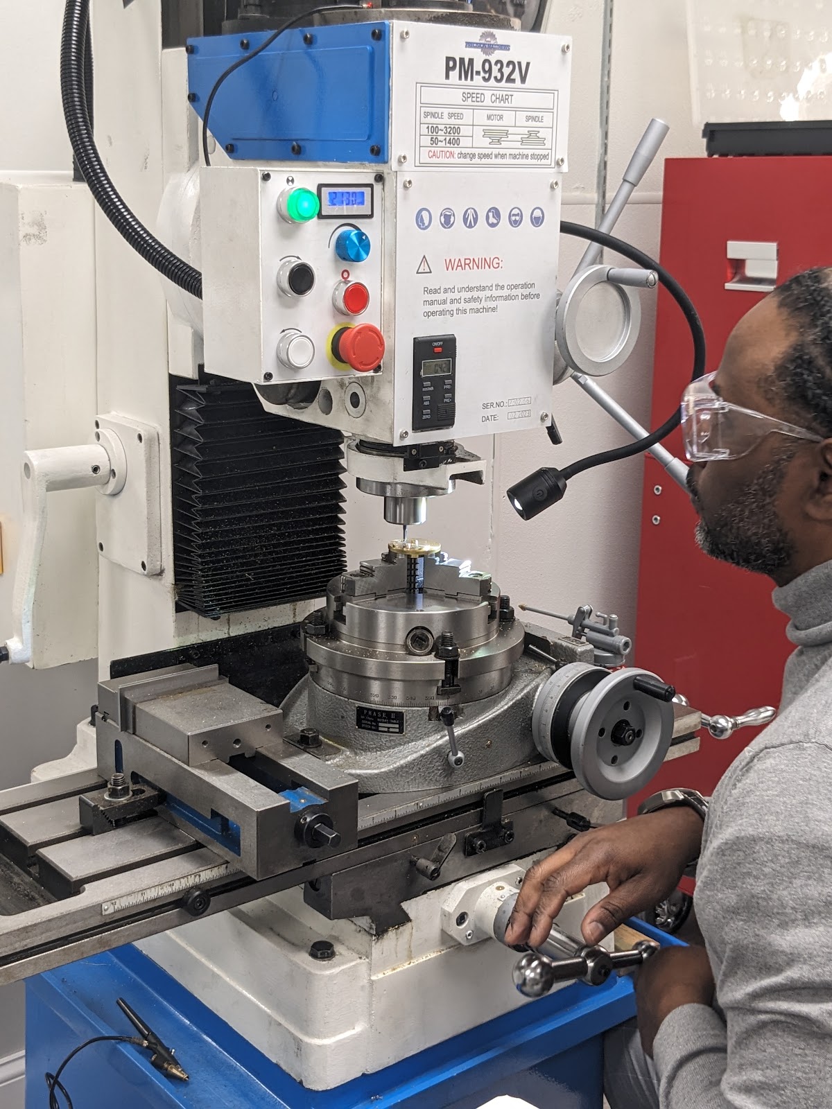 The final section of Lovell's workshop is more isolated than the others, for good reason. It is here that Lovell "makes chips," ie does precision machining of parts using relatively heavy equipment. Lovell operating his high precision mill. He has three Schaublin lathes in this part of the workshop. He previously installed some of his lathes in a basement workshop, which is a challenging feat given how heavy they are. Alongside the lathes, Lovell has two high precision milling machines. He spent a little time using one of them while I was visiting his workshop.